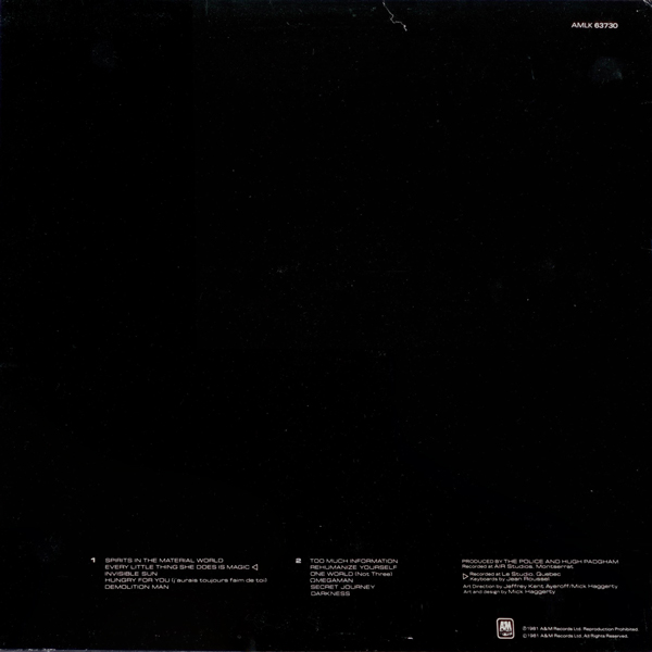 Il suono anni ’80 degli A-ha o degli Wham, tanto per capirci, ancora non è nato. I Police in questo album sono sostanzialmente una rock band che suona musica pop infarcita di suoni “futuristici” fatti dal sintetizzatore.